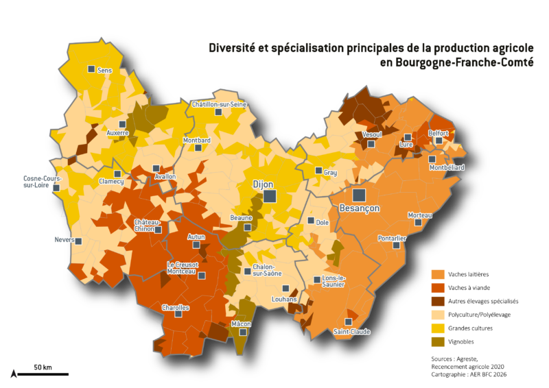 La Bourgogne-Franche-Comté est un territoire à forte identité agricole, où l’agriculture occupe une place centrale grâce à ses vastes surfaces et à l’importance de sa population active dédiée.