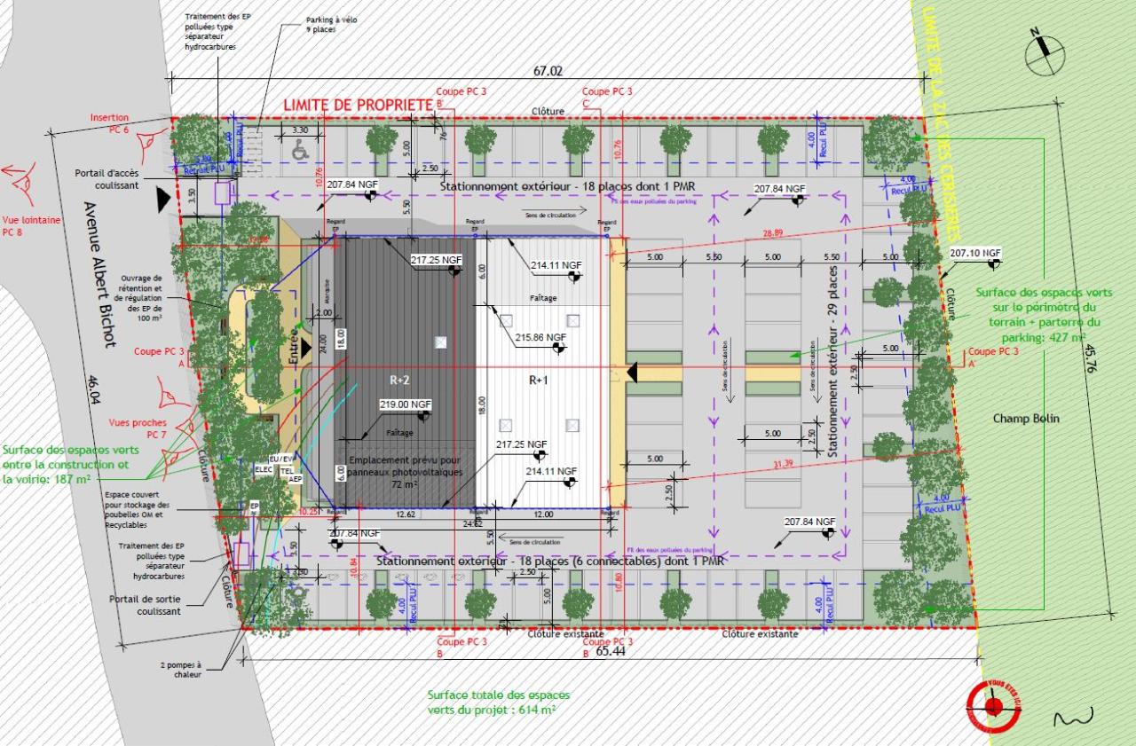 Immeuble tertiaire neuf à construire de 1 349 m² sur 3 étages, avec 64 places de parking privatives, climatisation réversible et contrôle d’accès. Open space.